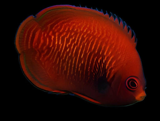 Only 1 left!The Goldflake Angelfish is a rare angelfish in the hobby. This baby Goldflake is eating pellets and frozen foods. Size: 4cm Reef safe with Caution.