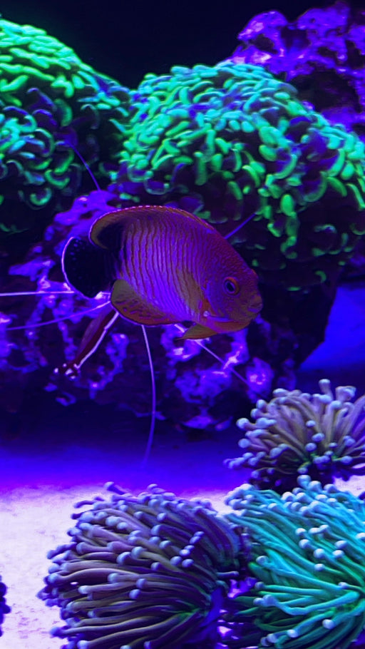Only 1 left!Size: Small Minimum Tank Size: 100lt Care Level: Easy Temperament: Peaceful Reef Compatible: Yes Water conditions: Temp 23-27deg, pH 7.8-8....