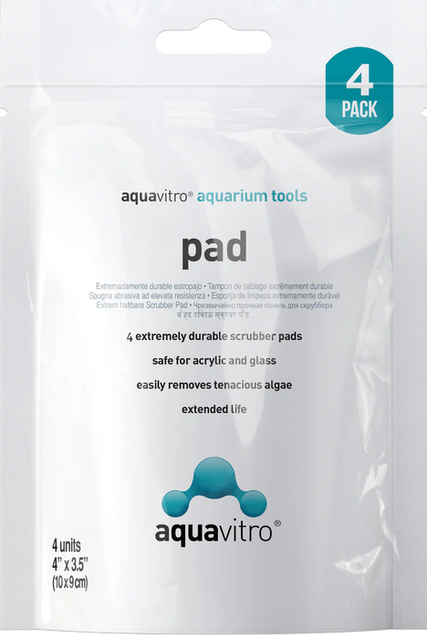 aquavitro® pad™ is the extremely durable algae pad for both glass and acrylic aquariums. Made from a durable synthetic cross-linked fiber, it has an extended life that outlasts most competing products. Its size and thickness allows you to easily remove tenacious algae from the broad sides of the aquarium, corners, and even from scratches. Finally, its white color makes it easy to see what you want to remove and when you’ve effectively removed it.