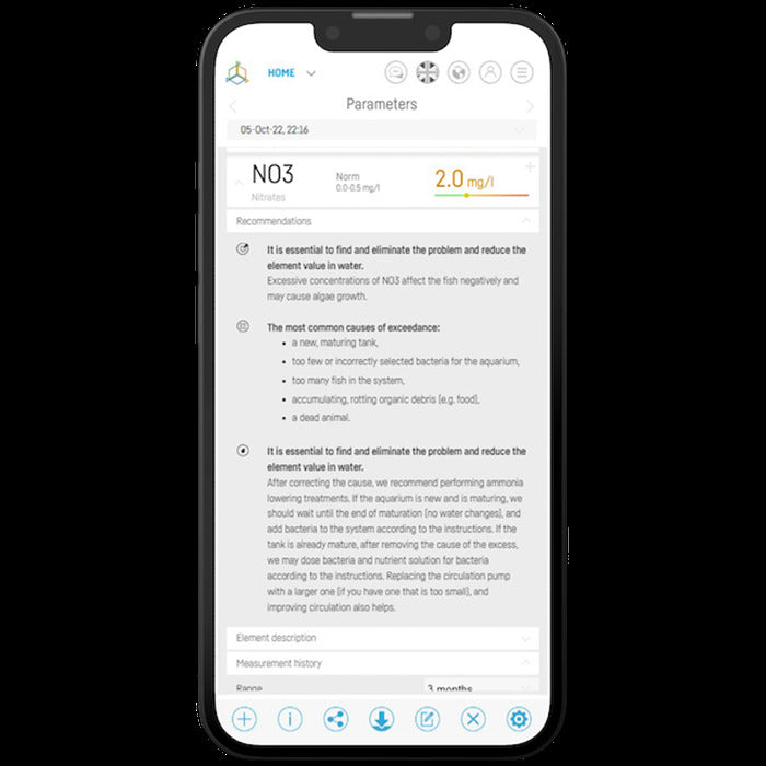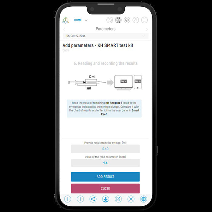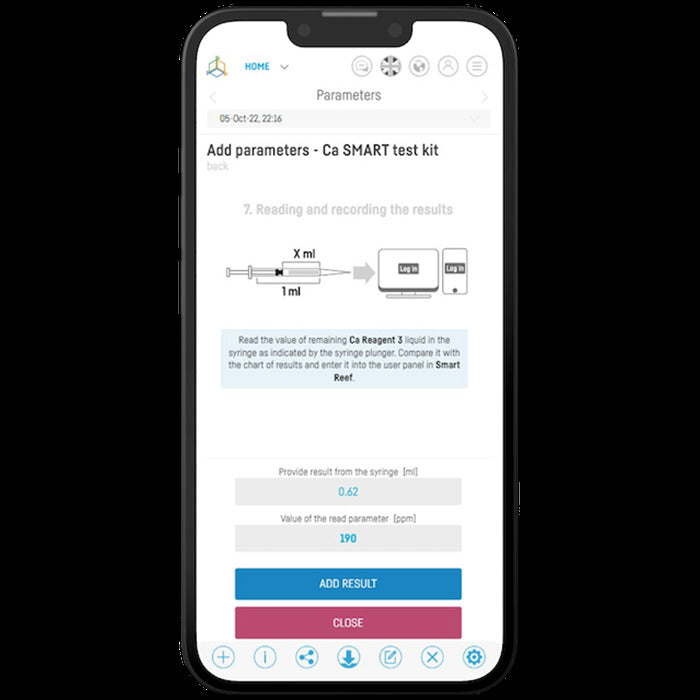 With Smart Reef, the drop test takes on a new meaning. Thanks to the integration with the application, and thus with the Dosing Panel, the interpretation of the results becomes child's play. Based on the results presented on a clear scale, we see easy-to-interpret recommendations on how to keep the parameter in the most optimal range. What's more, the dosing panel saves the history of measurements and allows you to conveniently share the history of parameters with other hobbyists. Lots of convenience, 1 app!