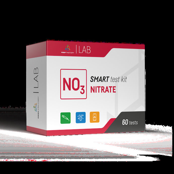 The Reef Factory Smart Nitrate Test Kit allows you to perform about 60 tests in the range of 2 to 200 mg/L.